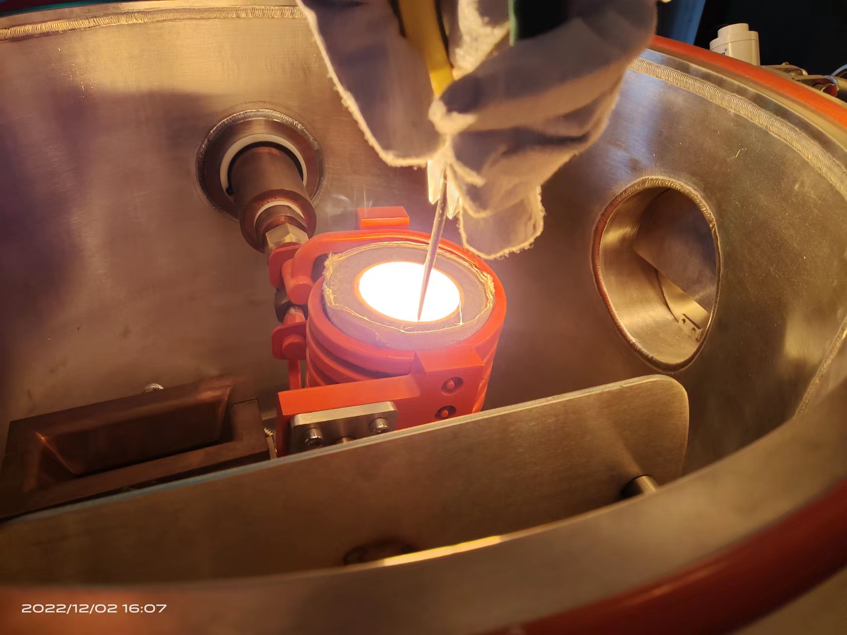 玻纤院技术人员在做实验 7公斤熔炼炉实验过程现象