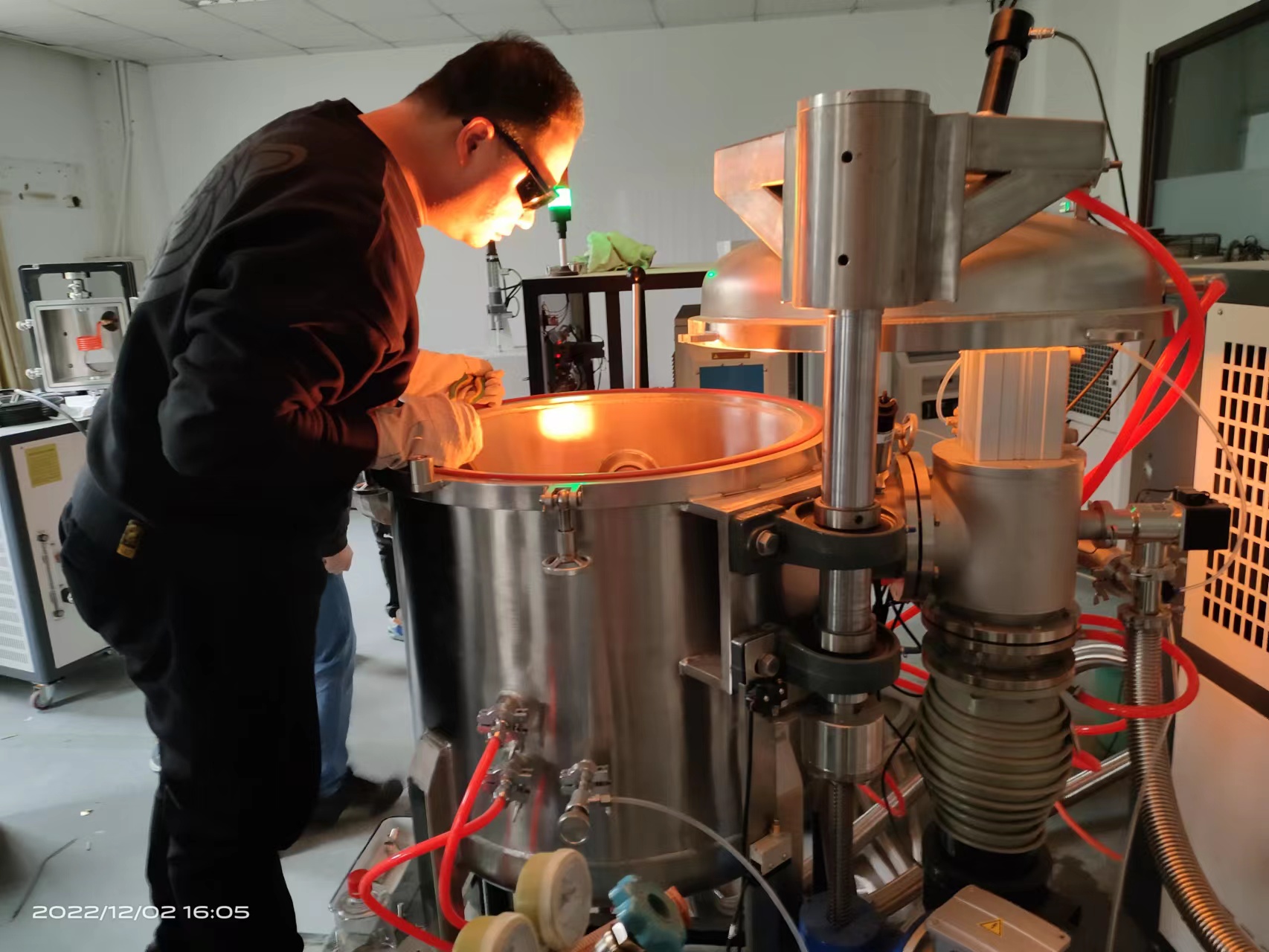 南京玻纤院来公司做真空熔炼炉实验